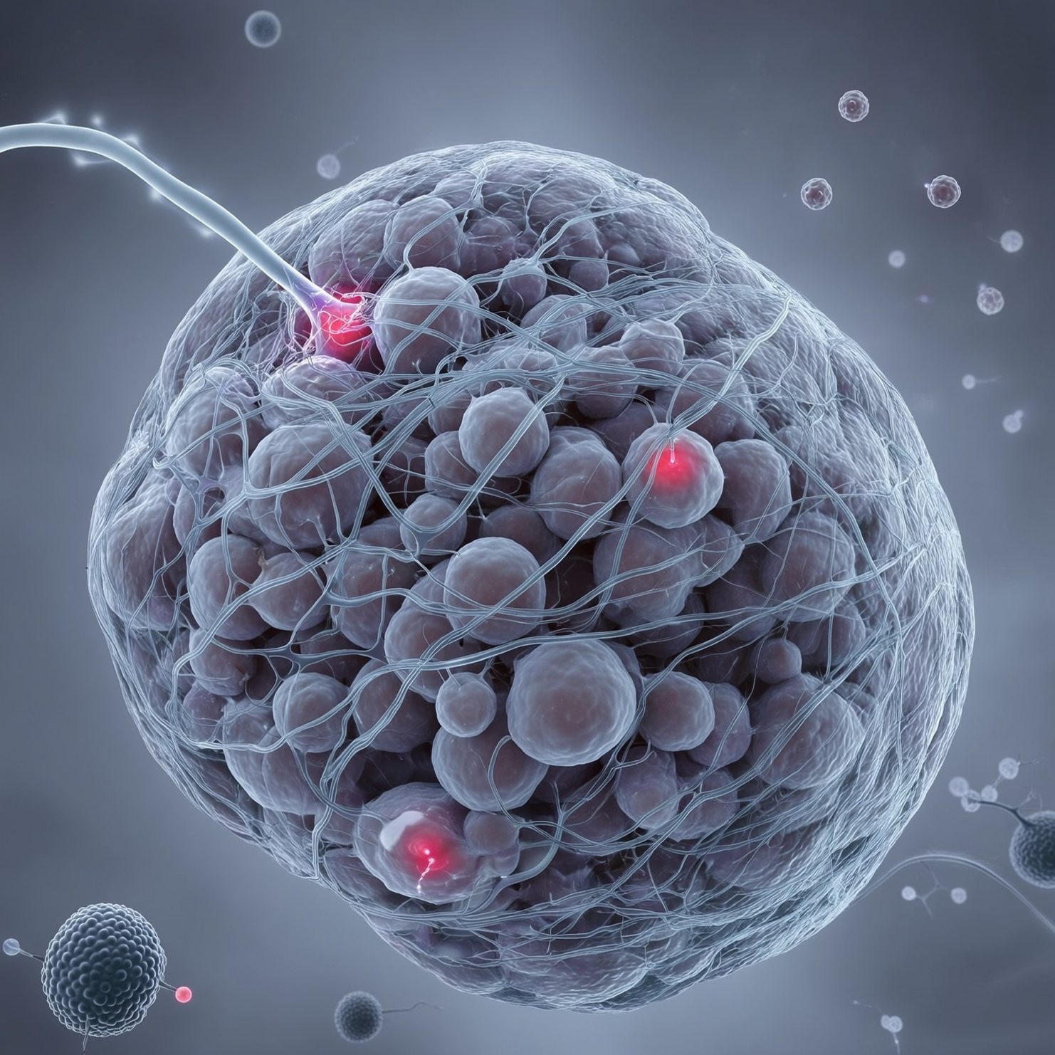 Попав в микроокружение опухоли, нейроны претерпевают транскрипционные изменения и начинают активно вырабатывать нейропептиды, в частности вещество Р. Этот короткий пептид, известный своей ролью в болевой сигнализации, имеет множество других функций — от расширения сосудов до модуляции иммунного ответа. Но самое интересное происходит дальше: вещество Р стимулирует опухолевые клетки к выработке интерлейкина-6 (IL-6), создавая замкнутый цикл взаимодействия.